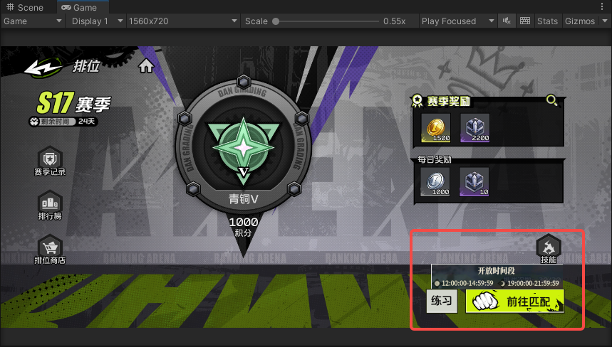 - 改为固定时间开启匹配:每日中午12:00:00-14:59:59、晚上19:00:00-21:59:59;其余时间段匹配按钮置灰,点击飘字提示【未到开启时间】,练习不受开启时间影响;