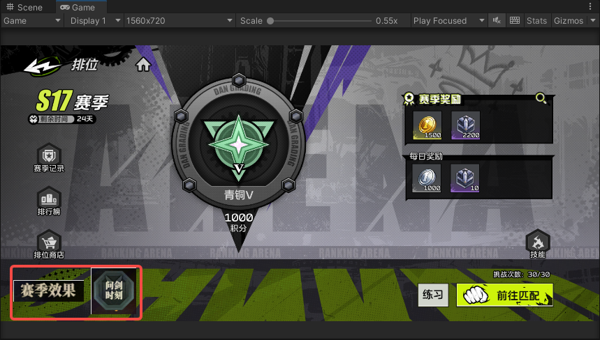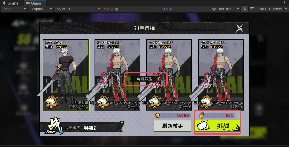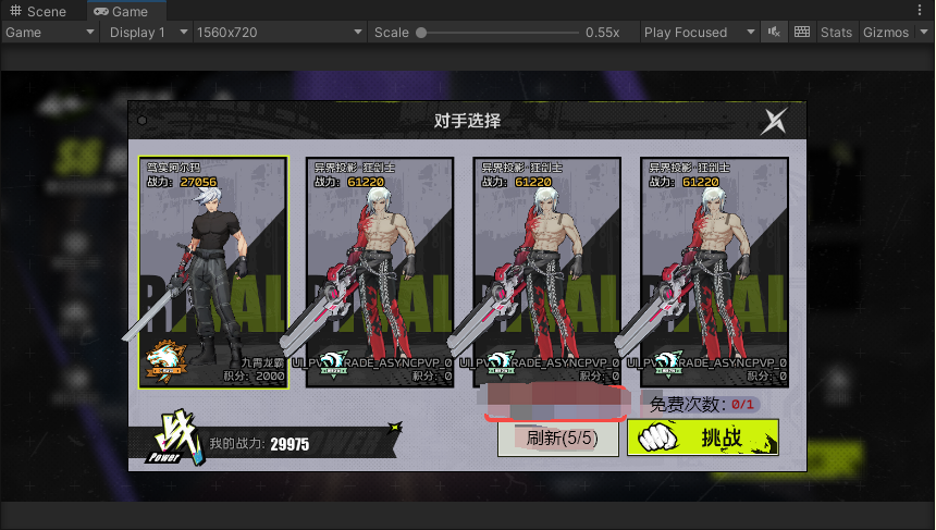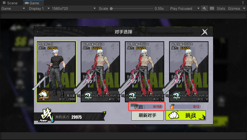 - 刷新的对手里加入机器人,配置分段机器人的属性、初始积分,玩家挑战机器人时,机器人的后续积分处理同玩家;
